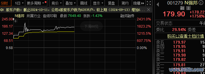 今日上市的两只新股,盘中涨幅巨大,其中N强邦盘中涨幅一度达到2400%,N铜冠盘中涨幅一度超过11倍。由于涨幅巨大,两只个股均在盘中被临时停牌。截至午间收盘,N强邦上涨1758% ,N铜冠上涨888%。