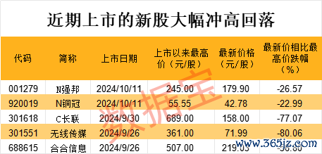 但是,如果投资者在新股首日盲目追高,且恰好买在最高点,则亏损巨大。N强邦从盘中最高价至午间收盘,已回落超26%;N铜冠也已回落近23%。